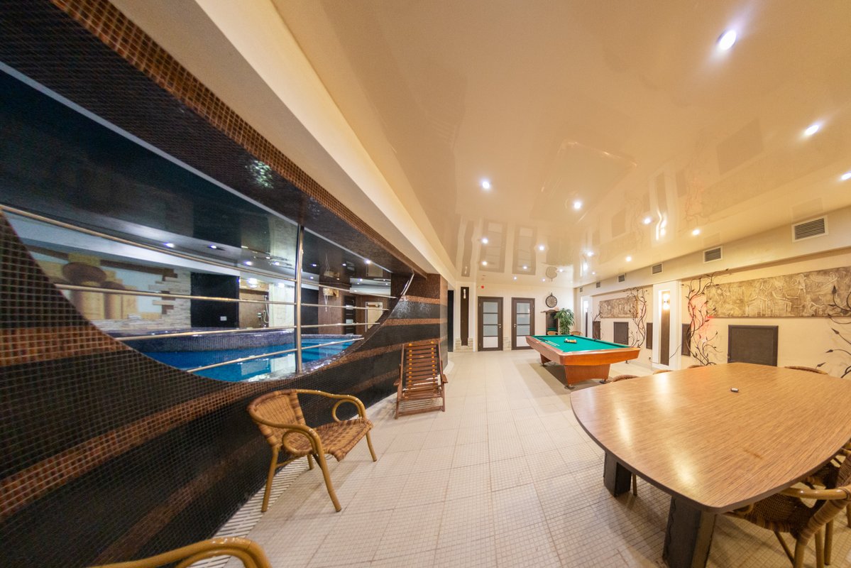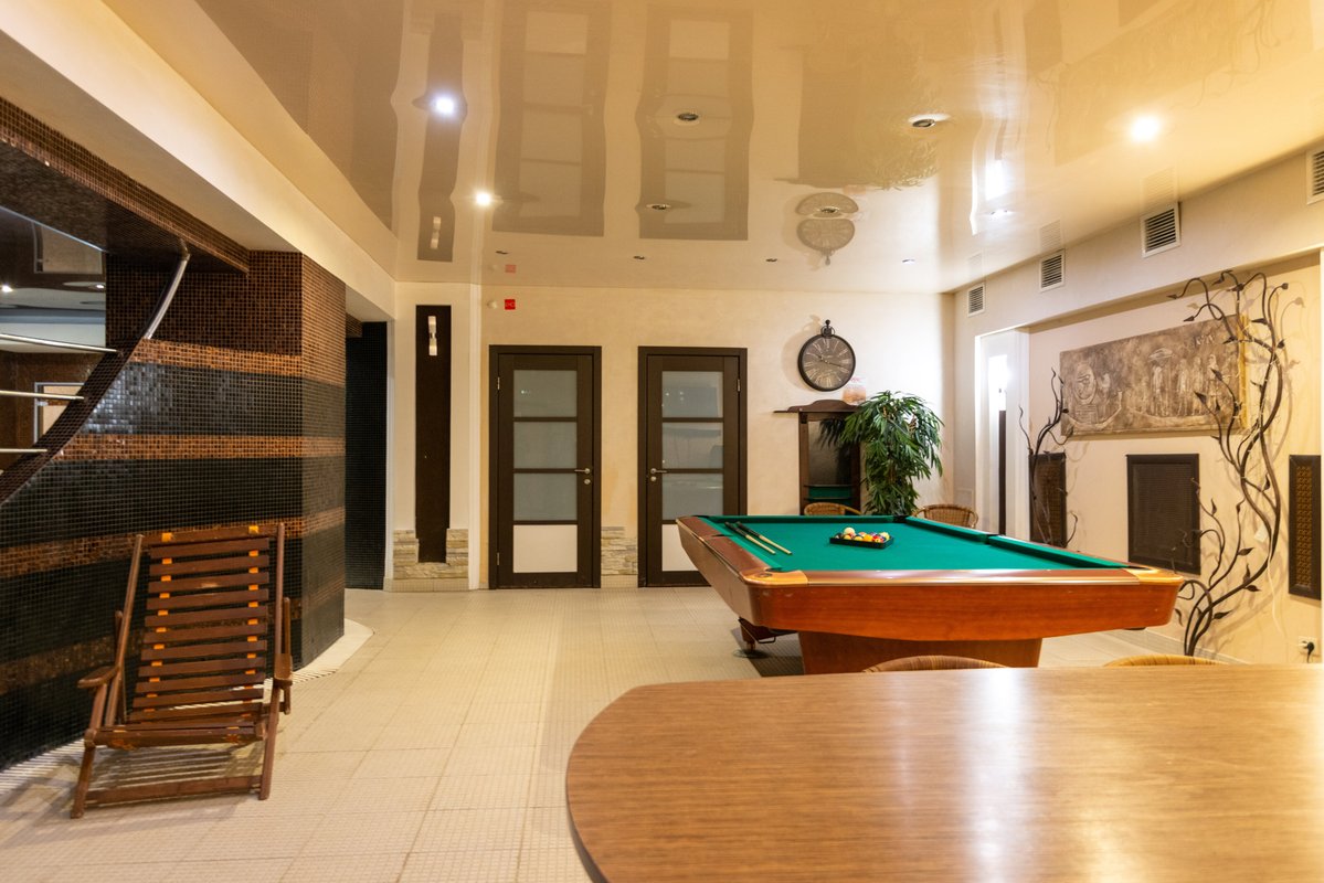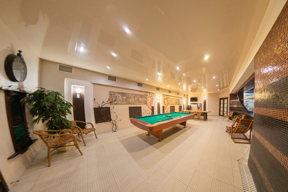 Не хочется в бассейн? Не проблема! Вместо этого можно посидеть в нашей комнате отдыха. Мы ставили своей целью создать здесь комфортный, стильный интерьер из преимущественно натуральных, безопасных материалов, выбрать мебель, которая будет в равной степени удобной и приятной глазу. Надеемся, что вы его оцените! Для поддержания атмосферы отдыха у нас есть кальян и караоке. Также у нас работает бар.