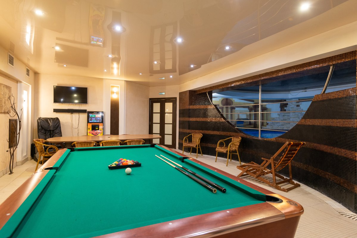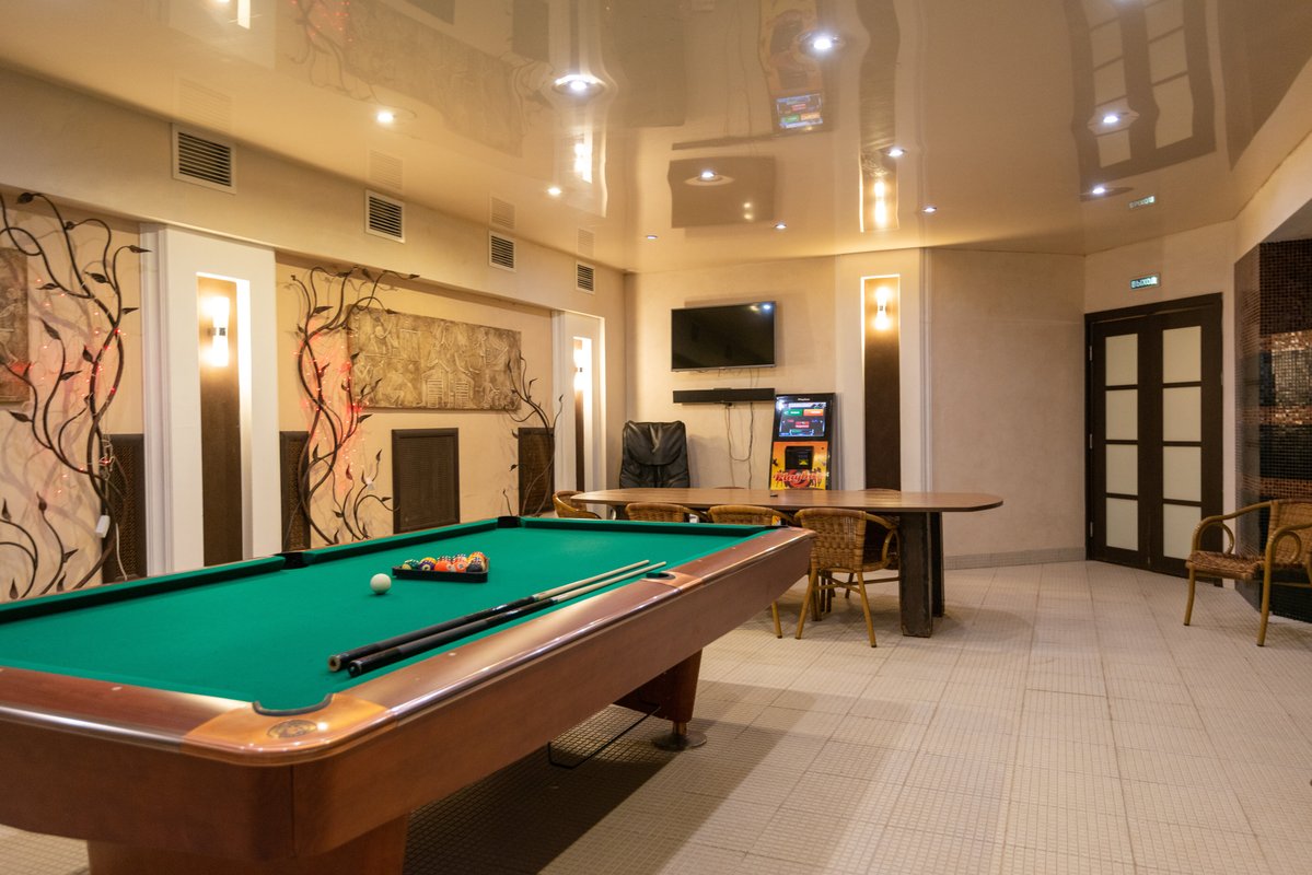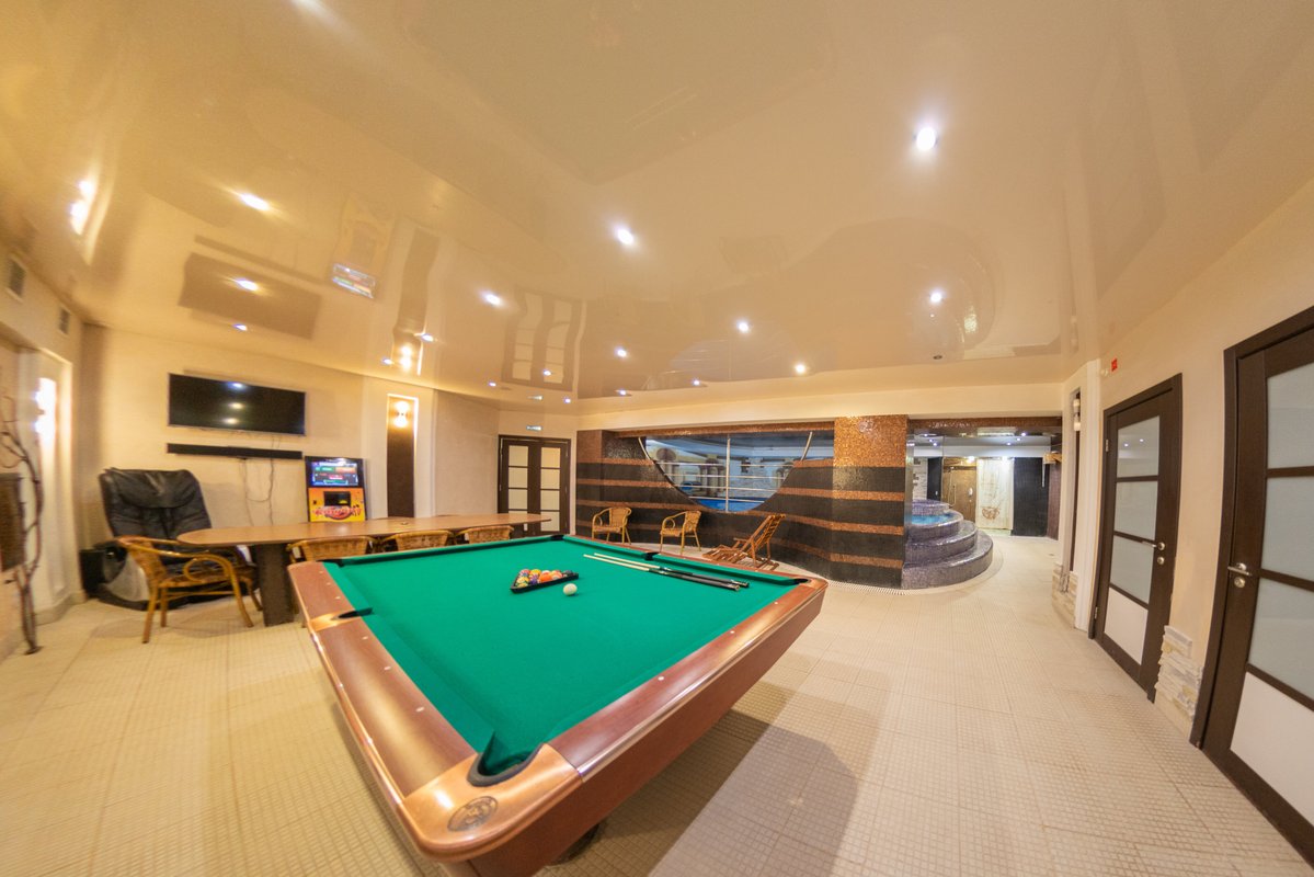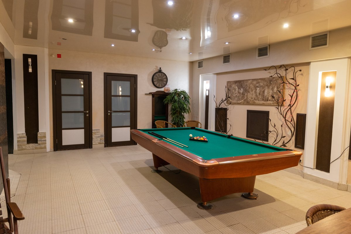 Не хочется в бассейн? Не проблема! Вместо этого можно посидеть в нашей комнате отдыха. Мы ставили своей целью создать здесь комфортный, стильный интерьер из преимущественно натуральных, безопасных материалов, выбрать мебель, которая будет в равной степени удобной и приятной глазу. Надеемся, что вы его оцените! Для поддержания атмосферы отдыха у нас есть кальян и караоке. Также у нас работает бар.